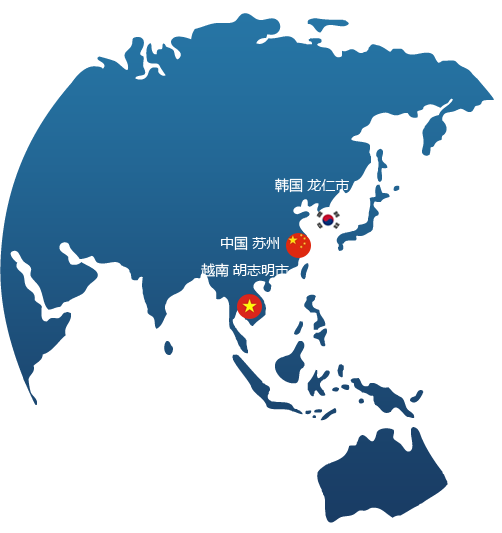 蘇州位于江蘇省東南部,長江三角洲中部,是江蘇長江經濟帶重要組成部分。東臨上海,南接嘉興,西抱太湖,北依長江。周圍四面發達利于交通運輸。加上蘇州優良水質對我司的產品有了更好的保障。公司在韓國和越南設有分公司辦事處,并且擁有產品儲存倉庫,具備全球供貨能力。